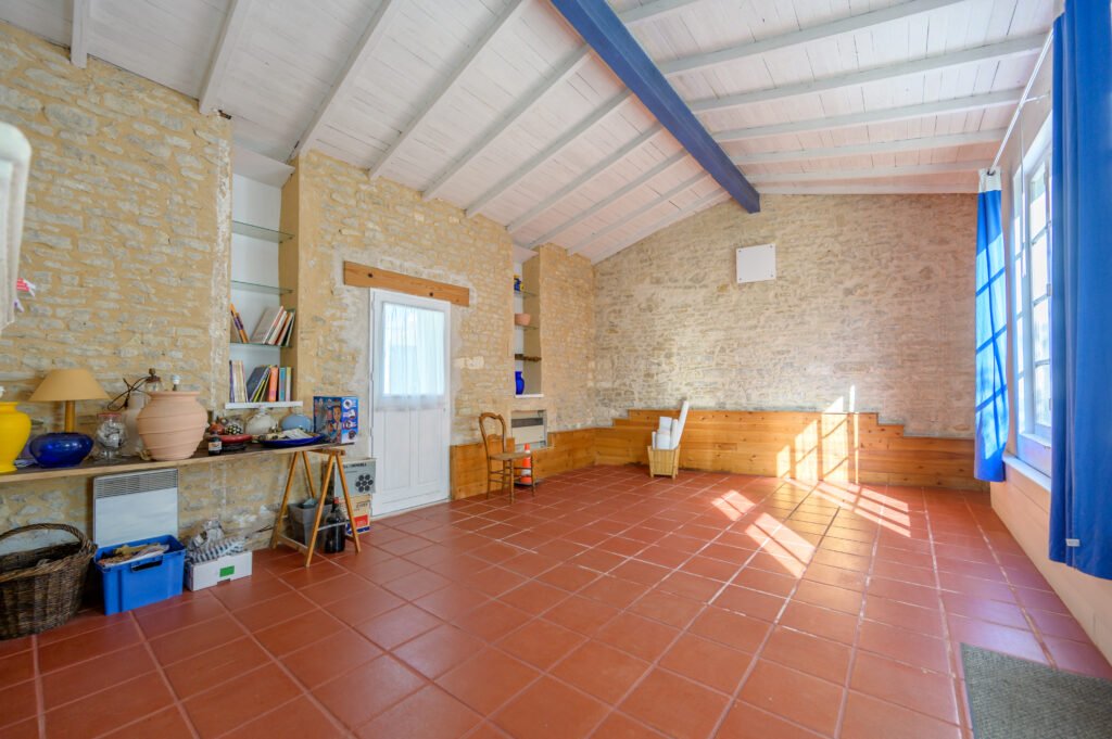 - Une annexe de plain-pied (avec accès indépendant) comprend une pièce principale avec cheminée, une chambre, une cuisine, une salle de bains et un WC indépendant.
