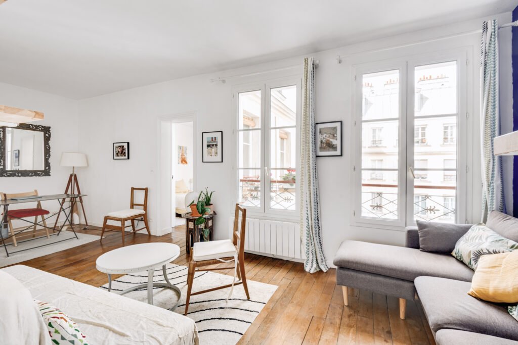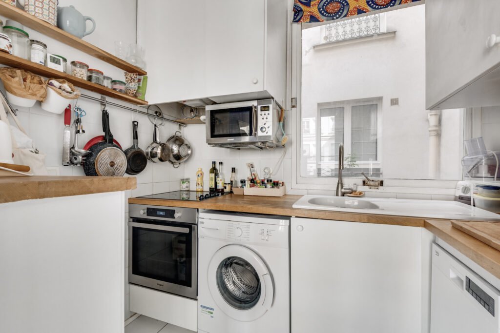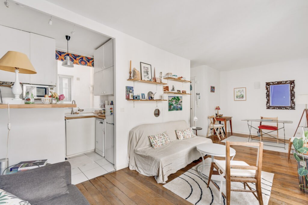 Sublime deux pièces comprenant un beau séjour exposé Ouest avec très belle cuisine ouverte, une chambre sur cour, salle d'eau avec WC. Cave en sous-sol.