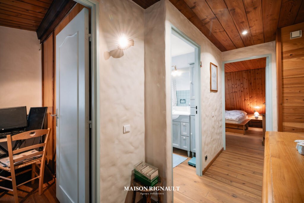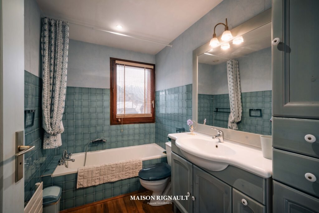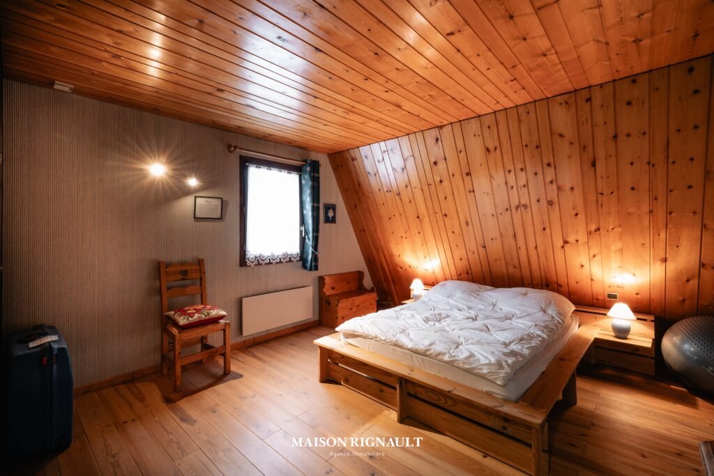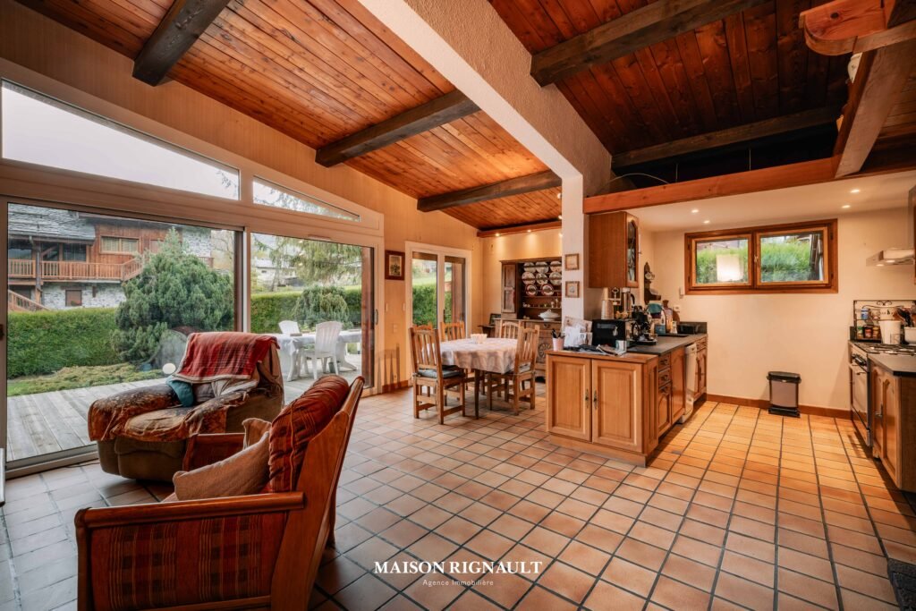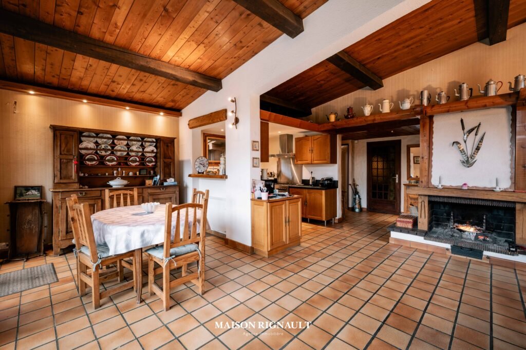 Sur environ 125 m² au sol , elle offre un vaste séjour avec cheminée, une suite parentale au rez-de-chaussée, ainsi qu’une cuisine centrale. À l’étage, deux chambres et une selle de bain s’ouvrent sur une vue terrasse et sur les montagnes environnantes.